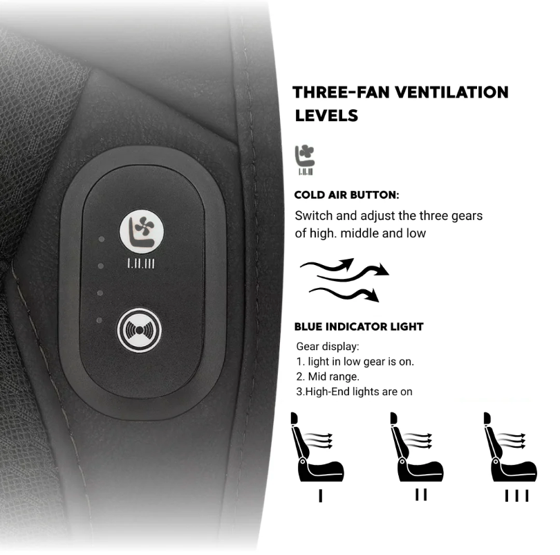 IcySeat uses integrated 5 built-fans to circulate cool air through breathable mesh fabric, providing consistent airflow across your back and legs.